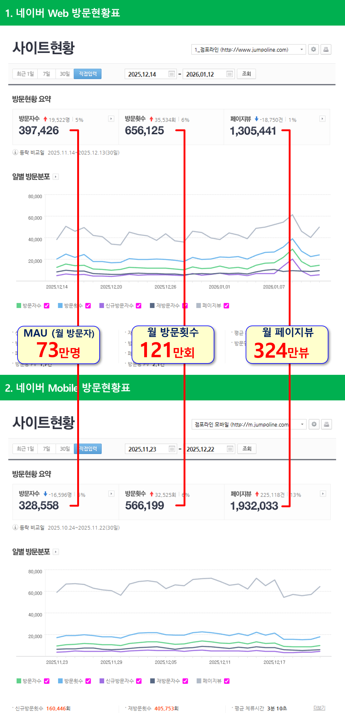 점포라인 웹/모바일 방문자 현황입니다.